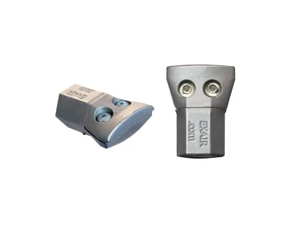 Air edgers provide very high impact air force so are a good choice of nozzle for air blow off drying / wiping. The high impact from air edgers mean that they can often be used to wipe liquid from complex shaped objects where other less powerful air focusing devices would fail. This is because a complexly shaped object will inevitably shield part of its surface from the air force. It is often impossible to get a complete 360 degree air blast around the whole object so some parts will rely on the deflected air currents from the initial impact points. As such the air blow off effect is greatly reduced and so requires a much bigger initial force if it is to be effective. And example would be drying bottles on a conveyor.